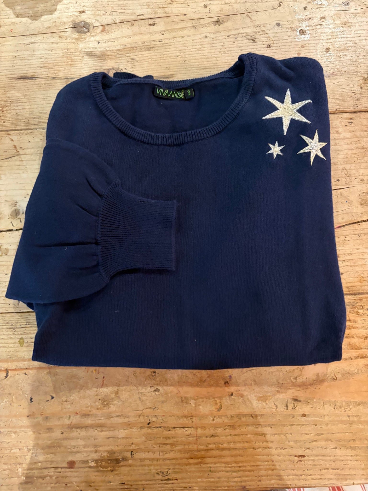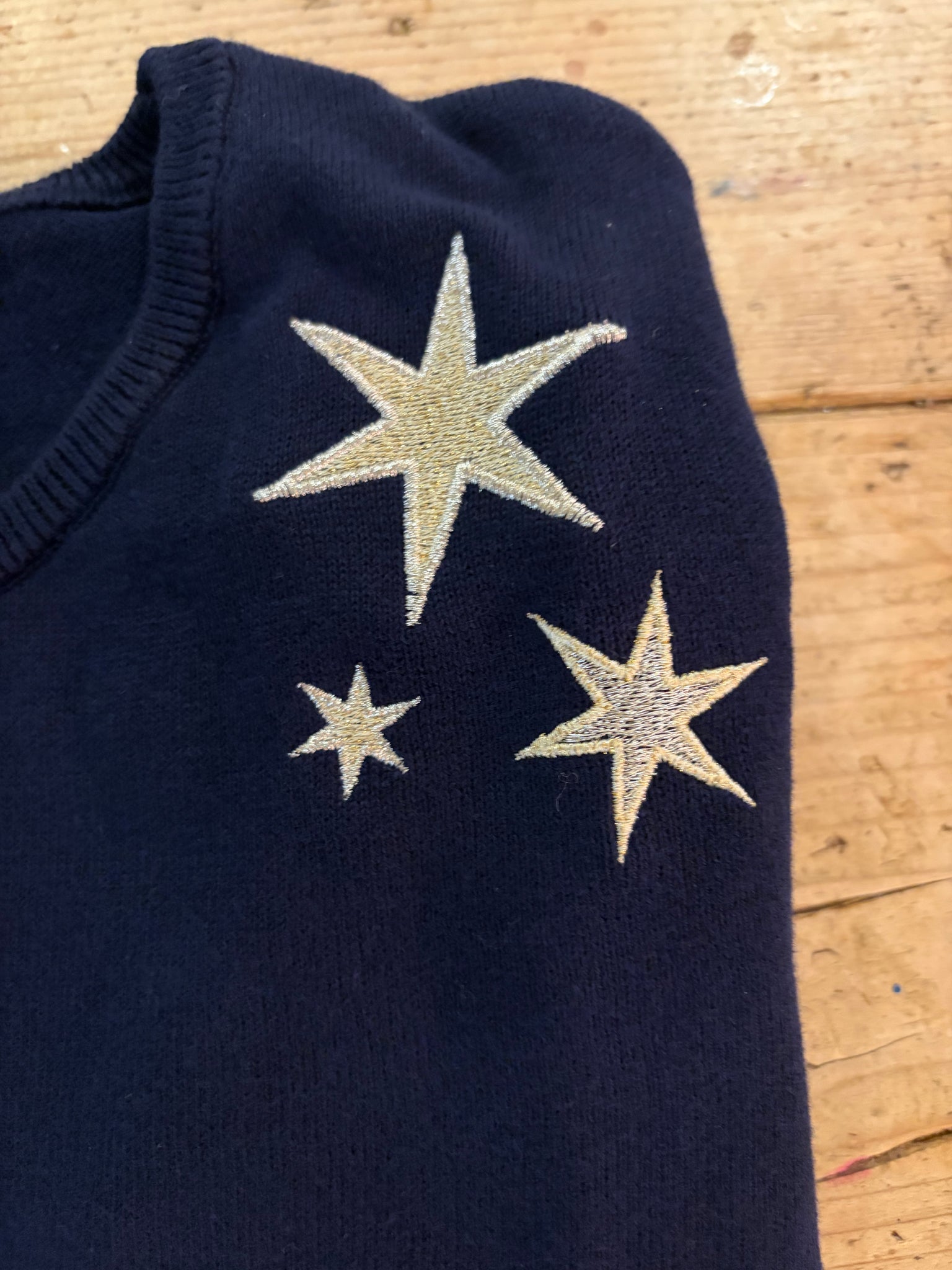 A different colourway to the Sydney design. Gorgeous gold embroidered stars. Perfect for a night out or Christmas celebrations.